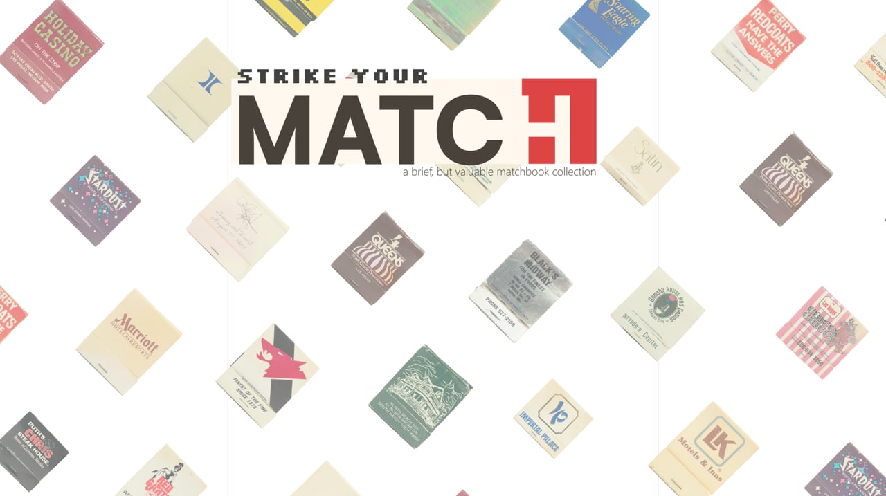 This is a collection of matchbooks from the mid 1900's to the early 2000's that my late Great Grandfather left for me years ago. They really held a special place in my heart because he left them for me. The matchboxes carry so much significance in my relationship, and when I smell them, it is like being transported back to their home in Jackson, MI, right on the lake. When I was prompted to explore a personal collection and translate it into a digital space, these matchbooks immediately stood ou